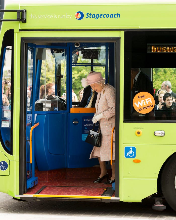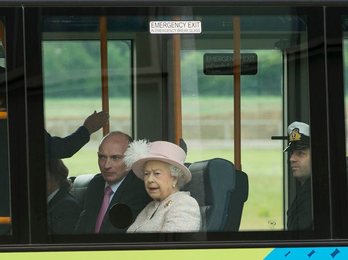 1. Nữ hoàng Elizabeth là quốc vương của Vương Quốc Anh, nhưng điều đó không có nghĩa là bà sẽ không đi xe buýt như một công dân bình thường.