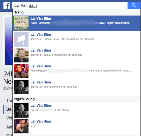 Dễ dàng nhận thấy có rất nhiều tài khoản mang tên Lại Văn Sâm trên Facebook.