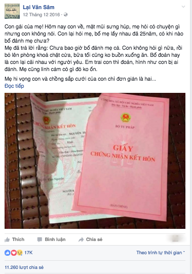 Thời gian gần đây, cộng đồng mạng liên tục chia sẻ những bài viết về triết lý cuộc sống không ghi rõ nguồn gốc do một fanpage có tên Lại Văn Sâm đăng tải. Tuy nhiên, mới đây, VTV cho biết đây không phải là tài khoản của nhà báo Lại Vân Sâm và hoàn toàn là giả mạo.