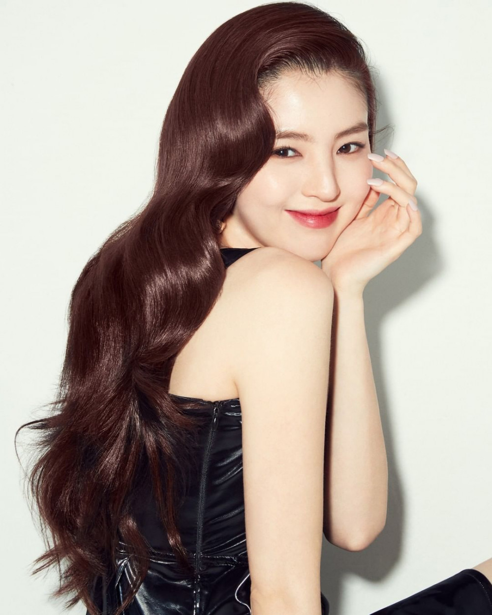 Han So Hee được nhìn thấy đang tạo dáng thanh lịch trước máy ảnh khi mái tóc nâu của cô buông xuống một cách uyển chuyển phía sau lưng.