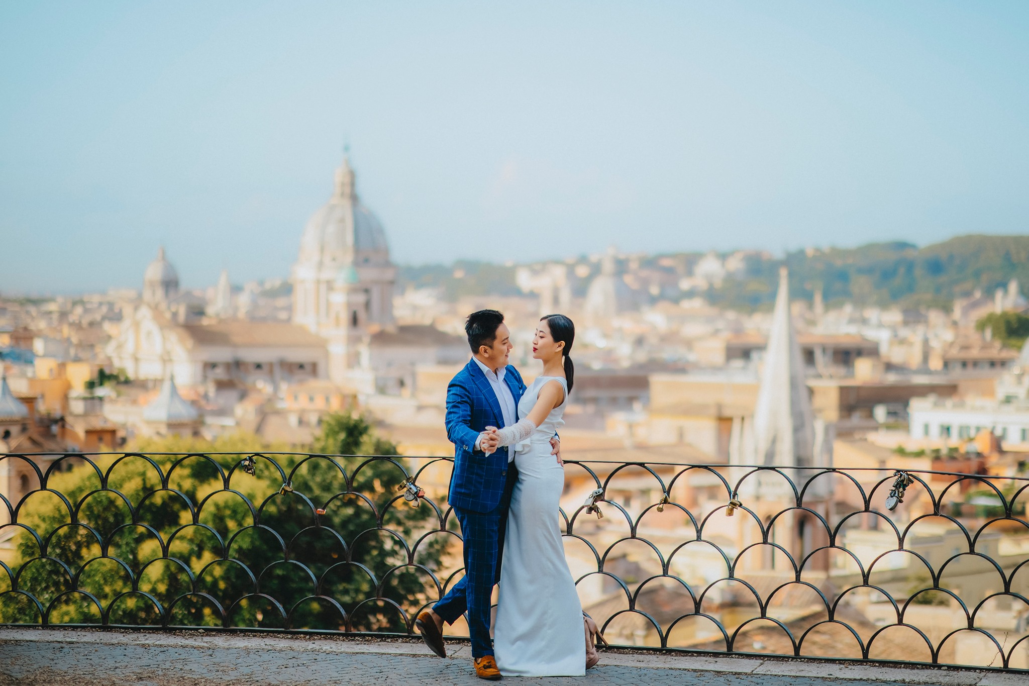 Trong ảnh, Liêu Hà Trinh và chồng sắp cưới tạo dáng như 2 vũ công đang khiêu vũ một điệu valse chầm chậm trong không gian đậm chất cổ điển. Bộ váy trắng đơn giản cùng kiểu tóc cột nhẹ khiến nữ MC trông vô cùng tinh tế, sang trọng.