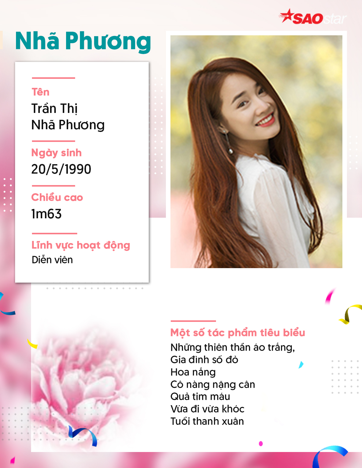 Ghi đậm dấu ấn với khán giả qua những vai diễn hiền lành, trong sáng, Nhã Phương được đánh giá thuộc lớp diễn viên thực lực và trở thành một trong những gương mặt sáng giá của nền điện ảnh nước nhà.