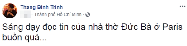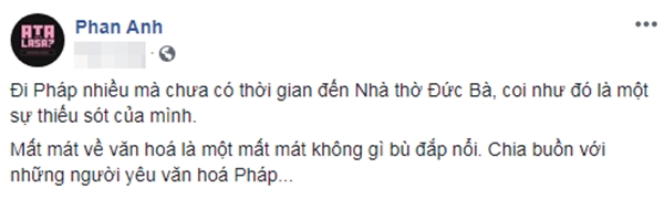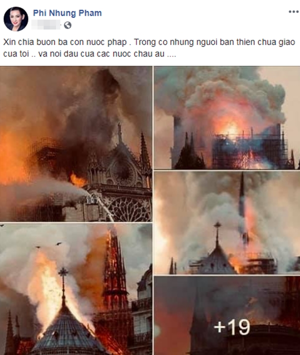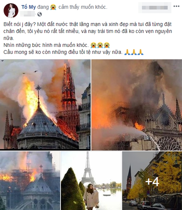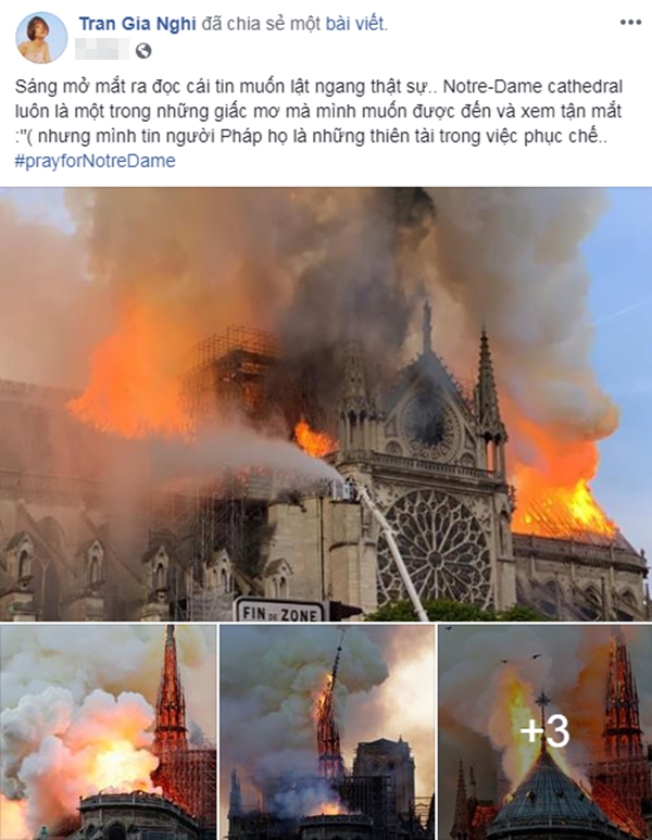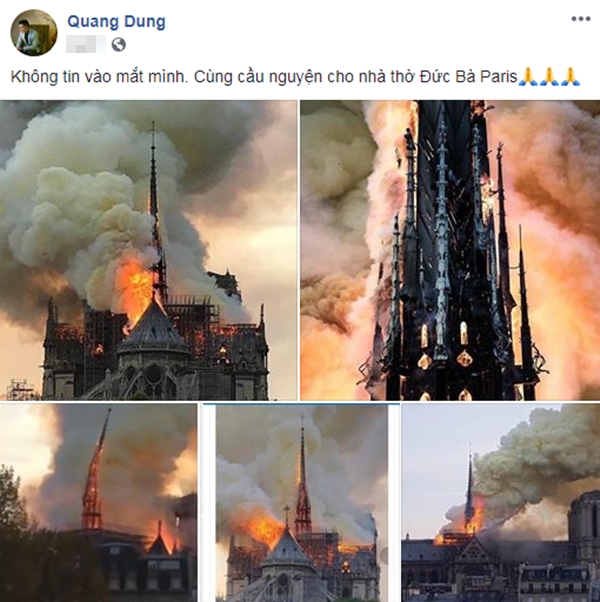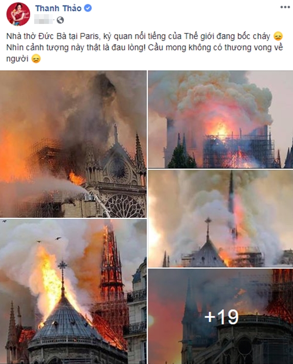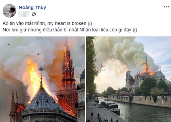 Được biết rất nhiều người có mặt đã bật khóc khi nhìn thấy kiến trúc này sụp đổ trước mắt. Hòa chung không khí tiếc nuối cho một di sản văn hóa thế giới, các sao Việt cũng đã gửi đến những lời cầu nguyện cũng như bày tỏ sự xót xa trước sự cố đáng tiếc này.