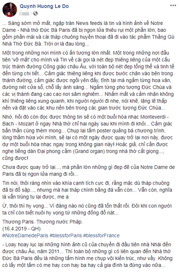 Hoàng Thùy cảm thấy đau lòng khi Nhà thờ Đức bà bị phá hủy.