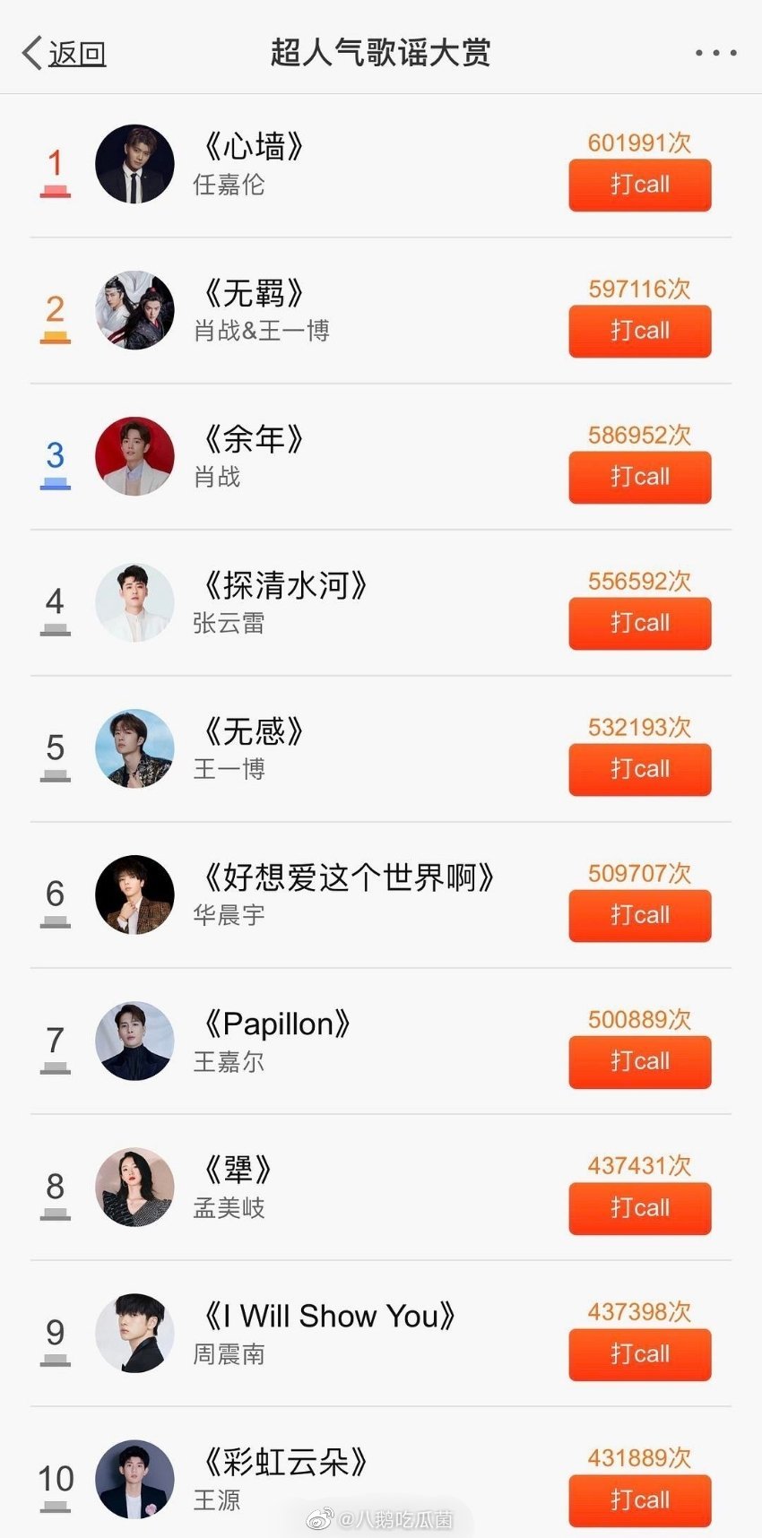 Và nhân khí này đã được chứng minh qua các số liệu với các bảng xếp hạng khác nhau và mới đây nhất, ca khúc Tâm tường (Bức tường trong tim) trong Cẩm y chi hạ do Nhậm Gia Luân trình bày đã vượt qua các ca khúc Vô Ky của Tiêu Chiến, Vương Nhất Bác hay Dư niên của Tiêu Chiến.., xếp vị trí thứ nhất trong bảng xếp hạng ca khúc được yêu thích. Ngoài ra, Nhậm Gia Luân còn vượt qua Hoa Thần Vũ, Lý Hiện xếp vị trí thứ ba trong bảng xếp hạng lượng tiêu thụ tạp chí điện tử sau Tiêu Chiến và Thái Từ Khôn.
