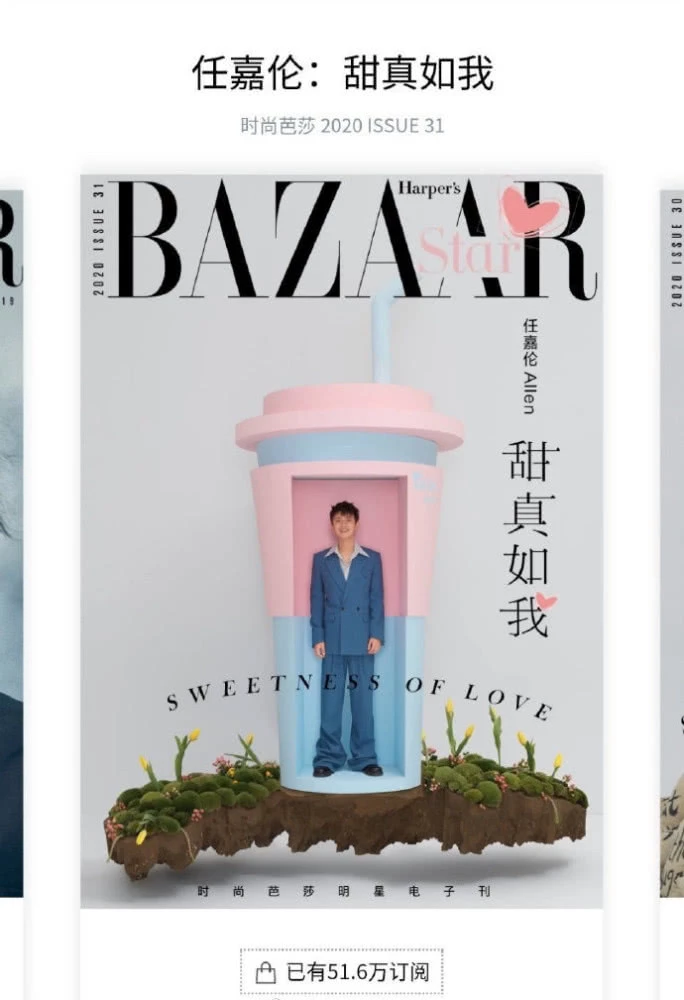 Ngày lễ Tình nhân, số tạp chí điện tử Thời thượng Bazaar với sự xuất hiện của Nhậm Gia Luân trên trang bìa đã được mở bán. Trước mắt, tính đến thời điểm tối ngày 16.02, doanh thu tạp chí số tháng của Nhậm Gia Luân đã vượt qua Lý Hiện, dẫn đầu hạng mục bìa đơn có doanh thu tạp chí điện tử cao nhất, và đứng thứ ba toàn bảng xếp hạng chỉ thua kém hai bìa couple của Vương Nhất Bác - Tiêu Chiến và Chu Nhất Long - Bạch Vũ.