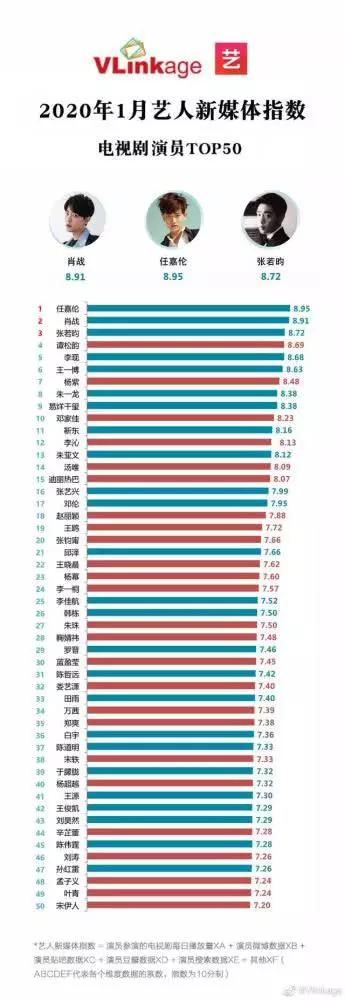 Nhậm Gia Luân liên tục dẫn đầu BXH truyền thông trong thời gian gần đây, vượt qua hai tên tuổi đang hot khác là Tiêu Chiến và Trương Nhược Quân.