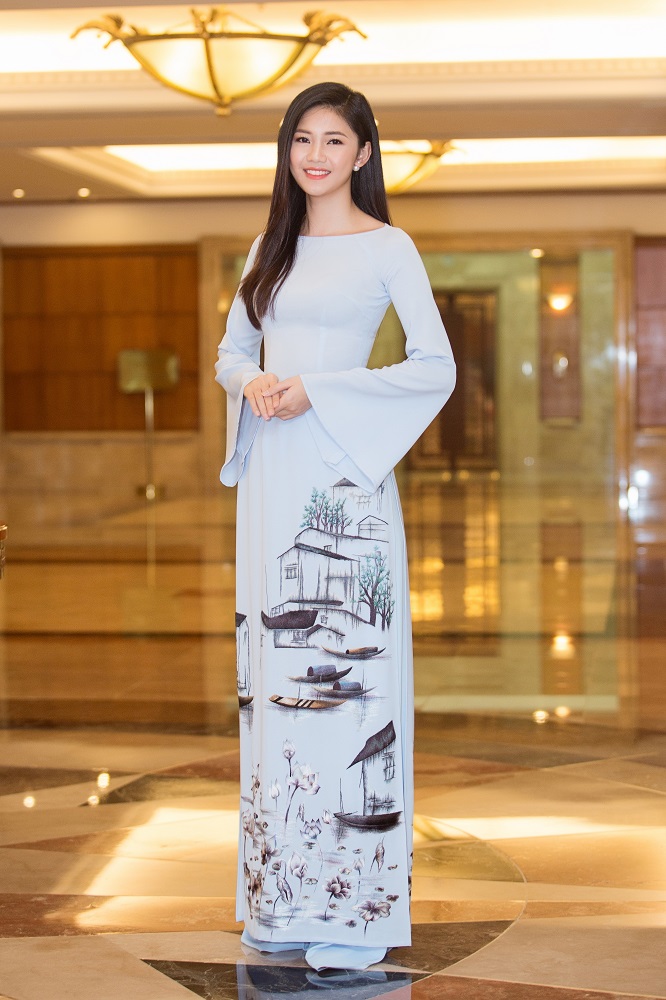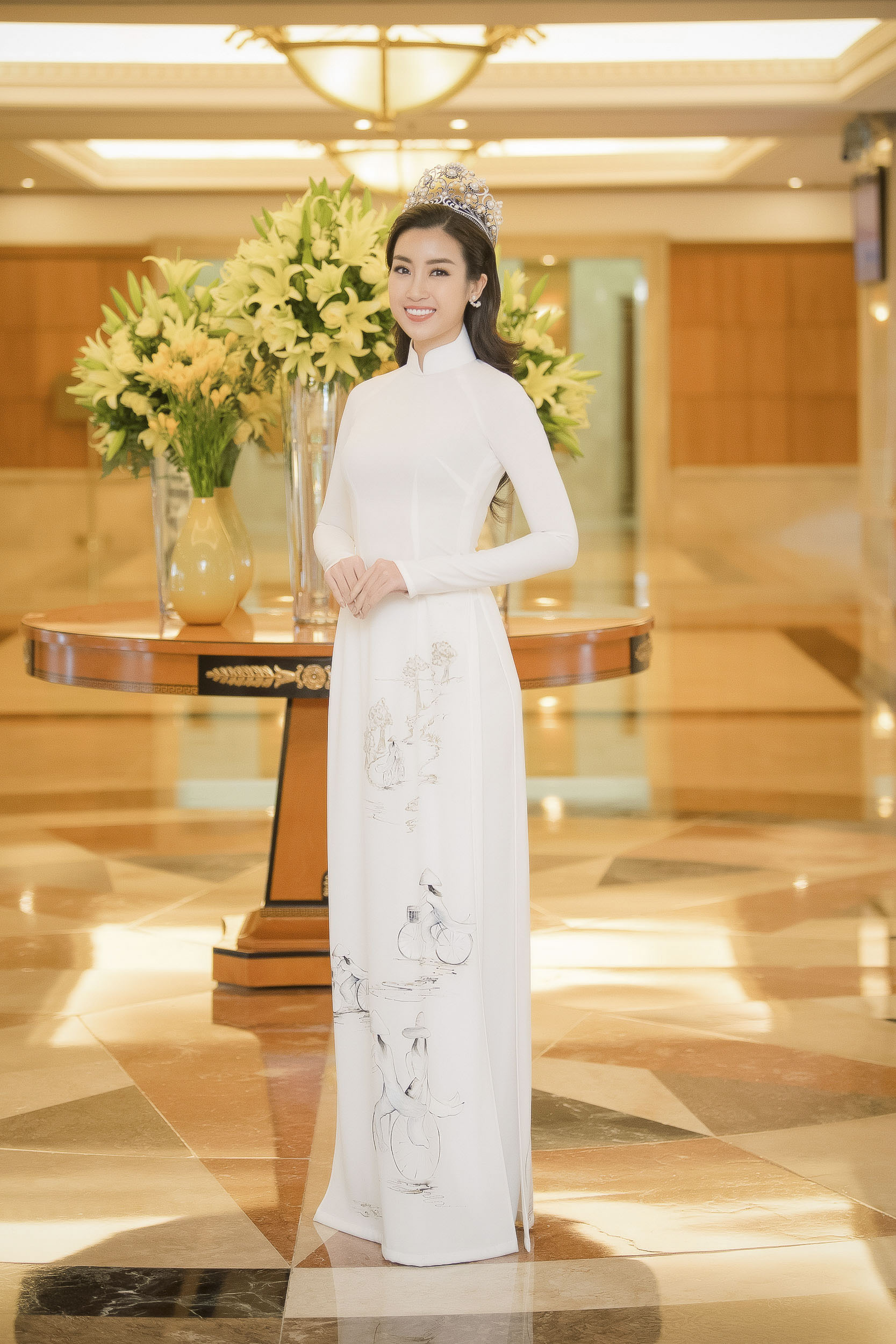 Hoa hậu Việt Nam 2016 Đỗ Mỹ Linh xinh đẹp trong trang phục áo dài truyền thống.