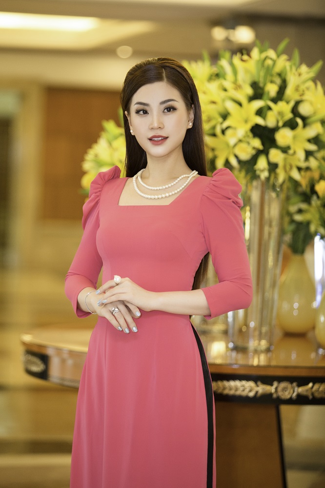 Á hậu Diễm Trang nền nã với áo dài hồng.