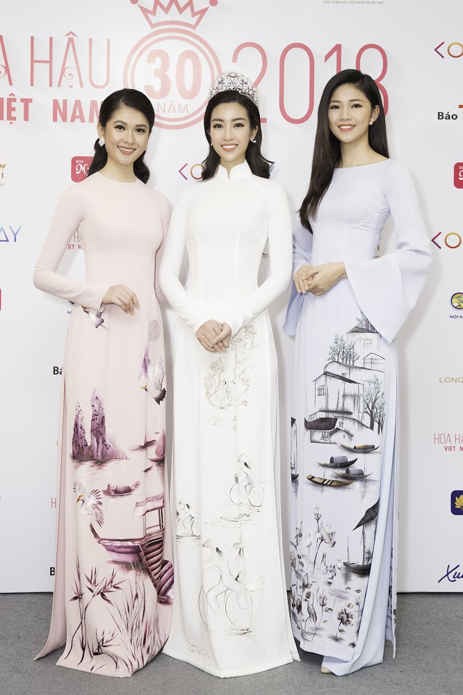 Á hậu Thuỳ Dung - Hoa hậu Mỹ Linh - Á hậu Thanh Tú duyên dáng trong trang phục áo dài.