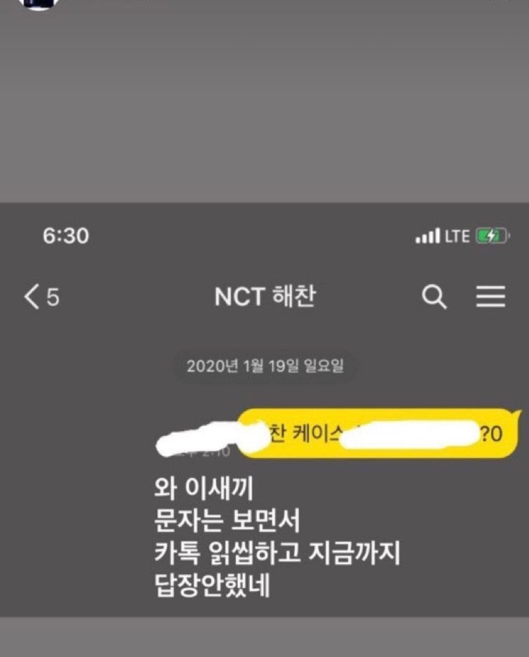 Bài đăng hiển thị rõ ràng một tin nhắn văn bản được gửi đến Haechan của NCT. Vì không nhận được lời hồi đáp, người nhân viên này viết: “Wow, thằng ranh con ***** này đọc tin nhắn của tao, nhưng thậm chí còn không phản hồi lại”.