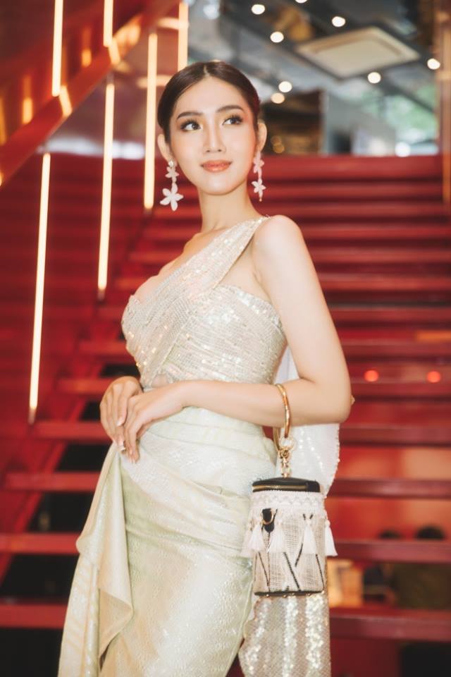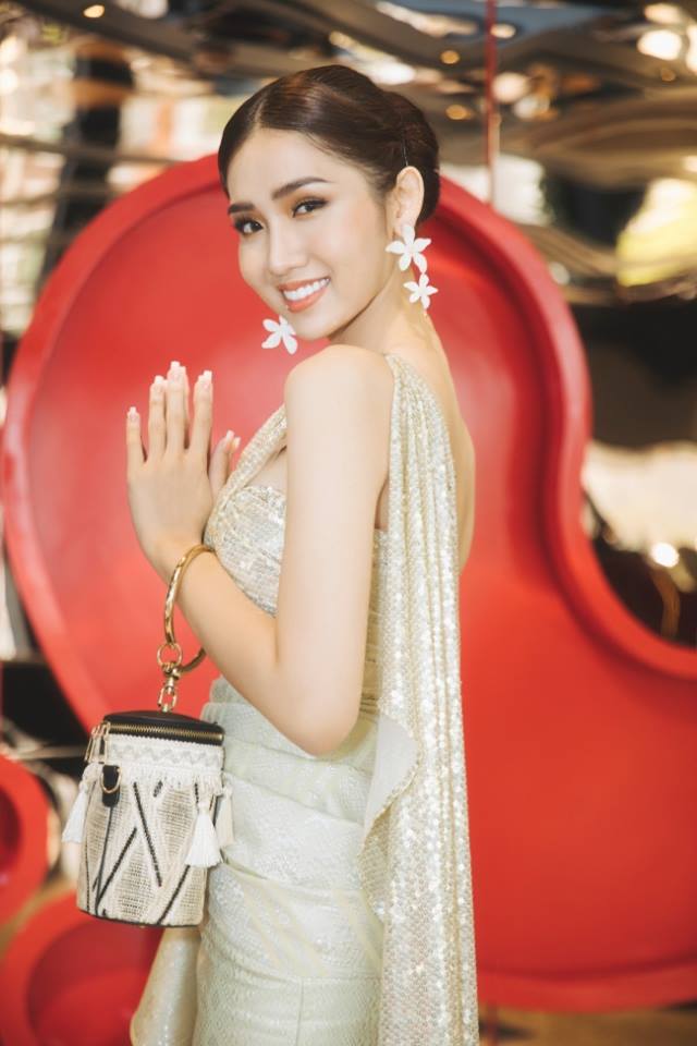 Không chỉ chuẩn bị trang phục truyền thống của xứ sở Chùa Vàng mà cả kiểu tóc, hoa tai, túi xách và cách trang điểm của Nhật Hà cũng “xinh như mộng”, đậm chất Thái Lan và hoàn toàn khác biệt với phong cách thường ngày của quán quân Chinh phục hoàn mỹ.