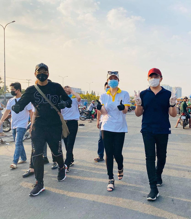 Mới đây nhất, trên trang cá nhân, ca sĩ Nhật Kim Anh vừa đăng tải loạt hình ảnh xuống đường phát hơn 4000 khẩu trang, 3000 lọ nước rửa tay cùng MC Đại Nghĩa, ca sĩ TiTi HKT, “tình tin đồn” của Đại Nghĩa - diễn viên Võ Tấn Phát cũng tham gia.