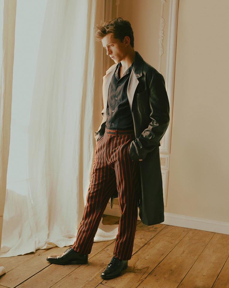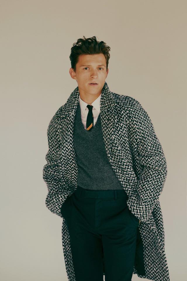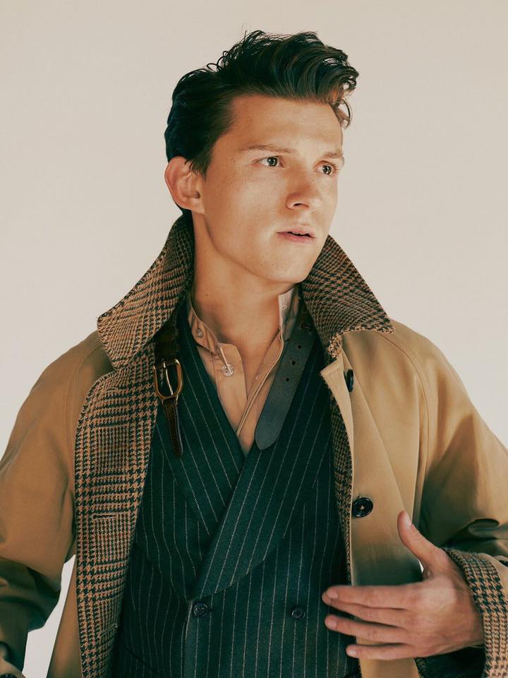 Góp mặt trên trang bìa tạp chí, Tom Holland diện trên mình bộ trang phục thu đông đầy lịch lãm, quý phái nhưng cũng không kém phần lãng tử. Rũ bỏ hình thượng chàng “Nhện nhọ” hàng xóm ngày nào, Tom trông trưởng thành, chín chắn hơn, chẳng khác gì một “quý ông mùa thu” đầy lịch thiệp.