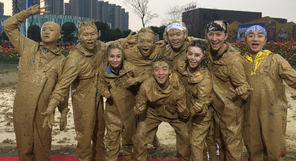 Các thành viên Running Man Trung Quốc sau trận đấu bùn.