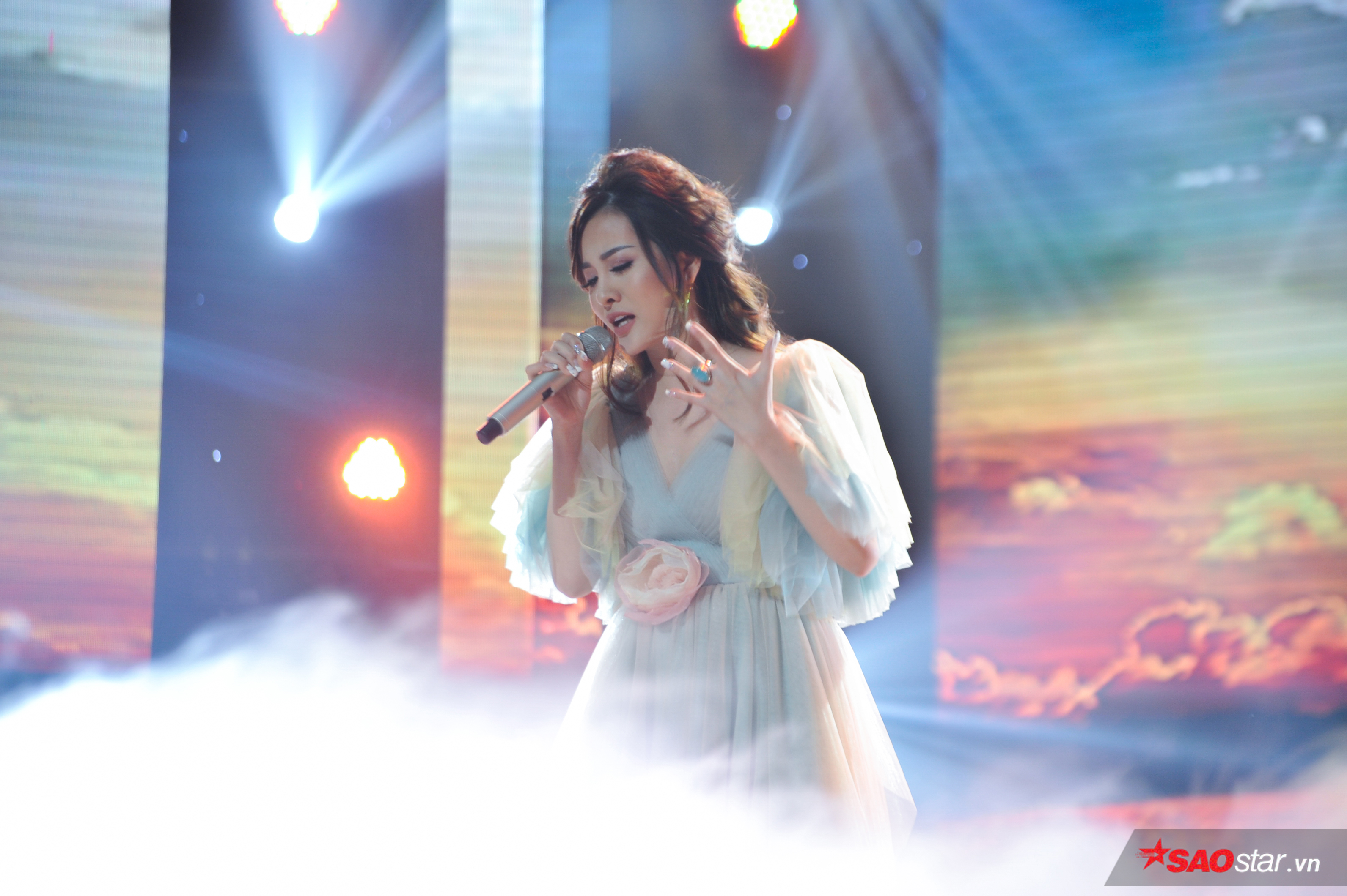 Tiếp đến là phần thi của thí sinh team Thu Phương - Mỹ Hằng, cô gái luôn choáng ngợp người nhìn bởi nhan sắc nổi bật và giọng ca ngọt ngào của mình. Vẫn theo đuổi ballad, Mỹ Hằng “đốn tim” người nghe bởi tiết mục đầy cảm xúc, tha thiết. Trái ngược với Thái Bình - “chiến binh” đến từ team Tóc Tiên. Cô gái khiến Tóc Tiên bật khóc tại vòng Giấu mặt lại tiếp tục… làm điều đó tại vòng liveshow 1, khi nữ HLV của Thái Bình lại chực khóc tại phần kết của tiết mục Cô gái ngày hôm qua của trò cưng.