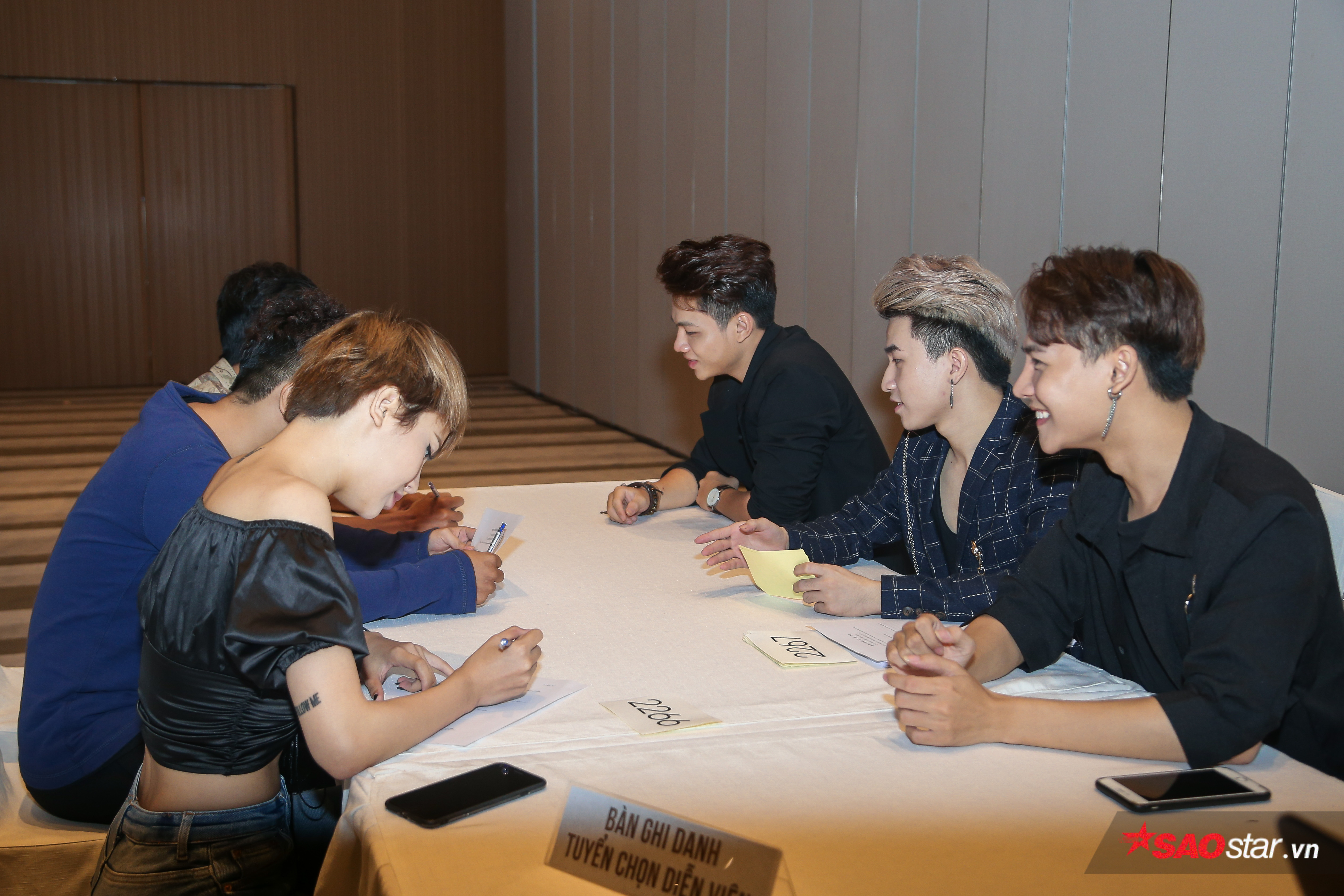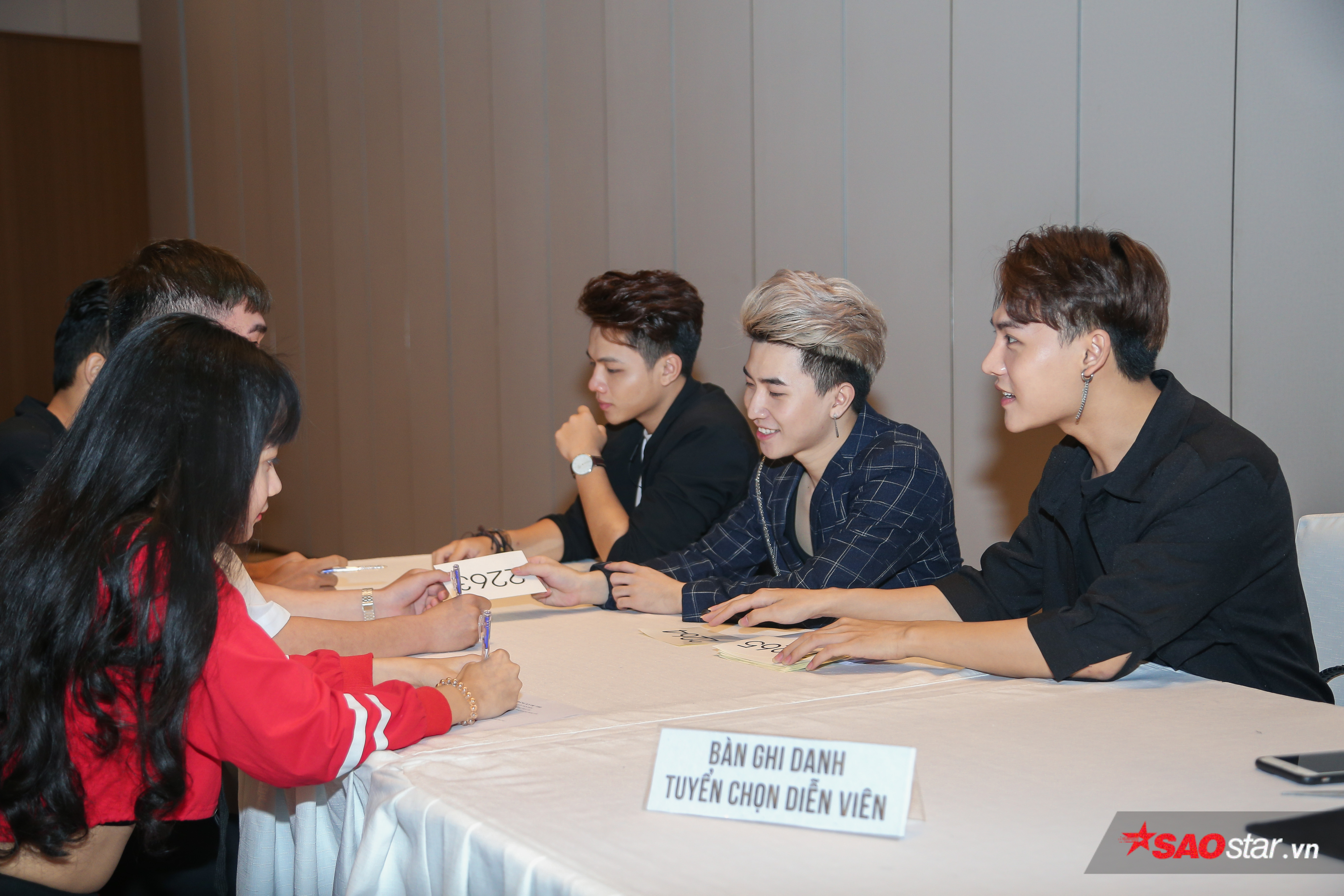 DOMINIX cùng nhau hướng dẫn thí sinh ghi hồ sơ đăng ký một cách cận kẽ. Đồng thời, á quân The Voice 2019 lắng nghe những chia sẻ đến từ các bạn, giúp các bạn cảm thấy thoải mái và tự tin hơn trước khi bước vào phòng gặp ban giám khảo.