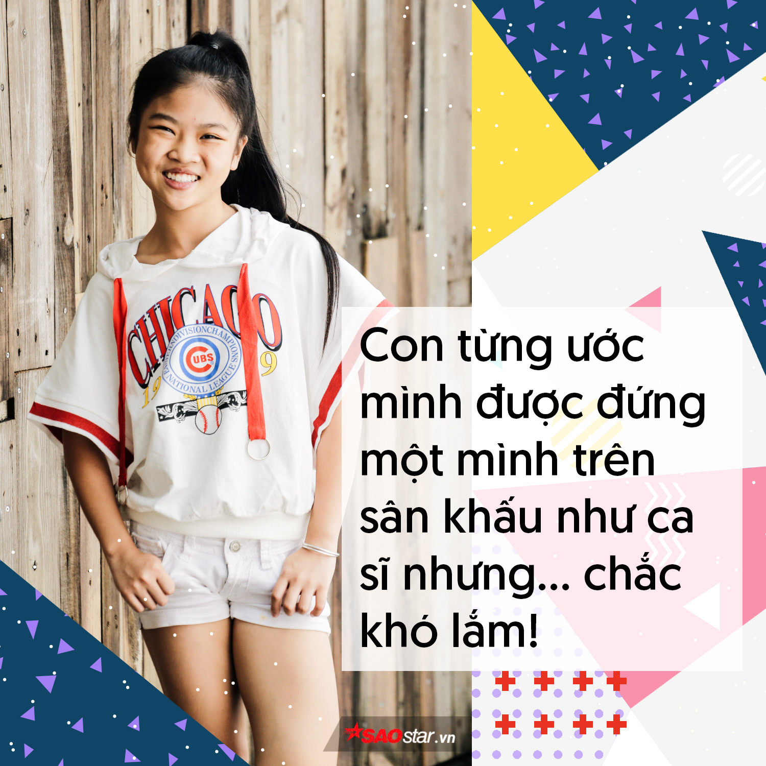 - Hồi trước con từng ước mình được đứng một mình trên sân khấu hát như ca sĩ nhưng con nghĩ chắc khó lắm, khi đó con khoảng 8 9 tuổi thôi nên cũng không nghĩ nhiều.