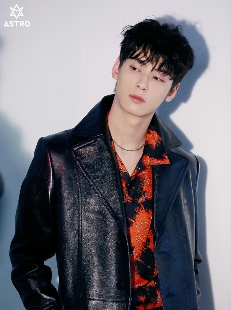 Trong mỗi bức ảnh, Cha Eunwoo đều mặc một bộ đồ đen gợi cảm với mái tóc bóng mượt.