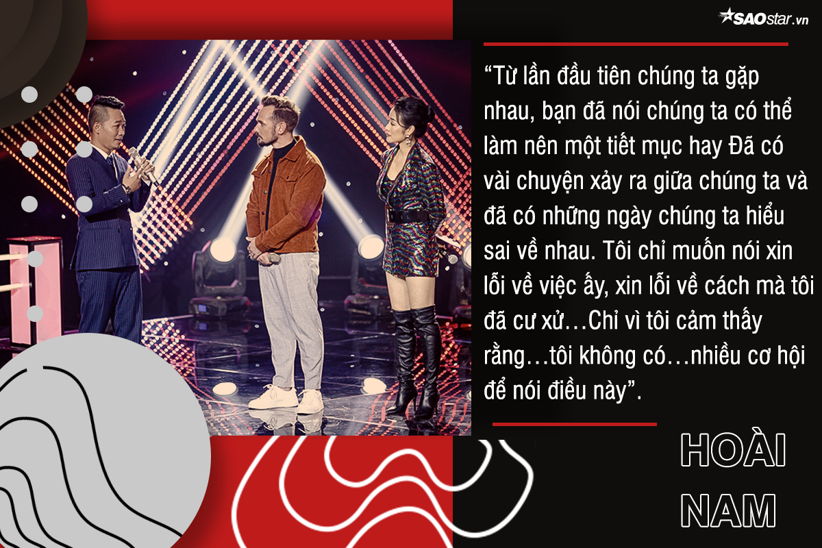 Tập phát sóng thứ 7 không chỉ là những khoảnh khắc bàn về chuyên môn mà còn có cả những câu chuyền tình bạn ấm áp. Điển hình là màn chia sẻ của thí sinh Đỗ Hoài Nam với đối thủ David: “Từ lần đầu tiên chúng ta gặp nhau, bạn đã nói chúng ta có thể làm nên một tiết mục hay Đã có vài chuyện xảy ra giữa chúng ta và đã có những ngày chúng ta hiểu sai về nhau. Tôi chỉ muốn nói xin lỗi về việc ấy, xin lỗi về cách mà tôi đã cư xử…Chỉ vì tôi cảm thấy rằng…tôi không có…nhiều cơ hội để nói điều này”.