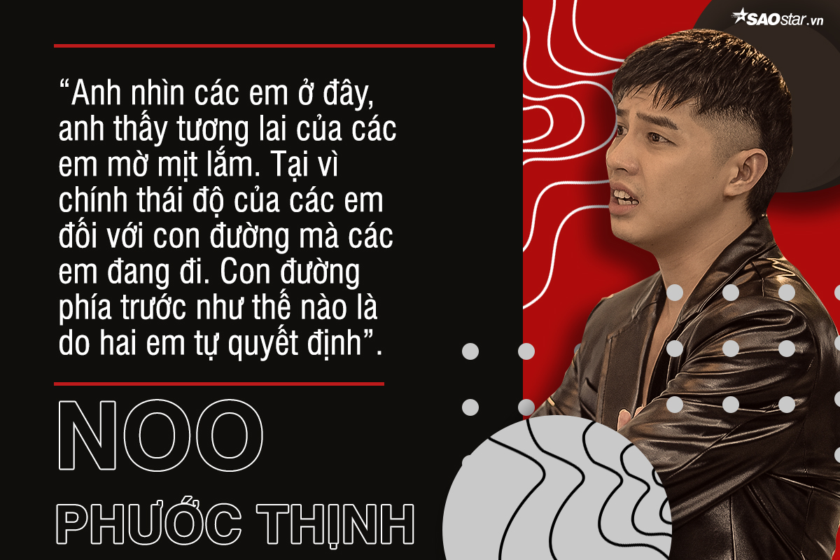 Lần xuất hiện này của cố vấn Noo Phước Thịnh là đáng chú ý nhất. Vì khán giả được chứng kiến khoảnh khắc nam ngôi sao tức giận trước thái độ của thí sinh tham gia chương trình: “Anh nhìn các em ở đây, anh thấy tương lai của các em mờ mịt lắm. Tại vì chính thái độ của các em đối với con đường mà các em đang đi. Con đường phía trước như thế nào là do hai em tự quyết định”.