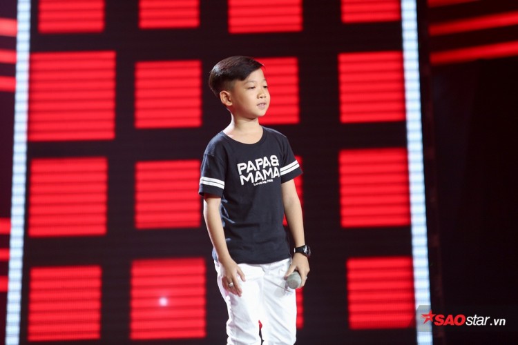 Minh Chiến: Con đã tập rất kỹ và hy vọng sẽ có một màn trình diễn thật tốt. Bài hát hôm nay con biểu diễn khá nổi tiếng của chú Châu Khải Phong, thuộc thể loại nhạc nhẹ ạ.