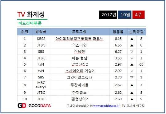 Với rating đạt 8.15%, The Unit đã dẫn đầu TV show hot nhất tuần thứ 4 của tháng 10.