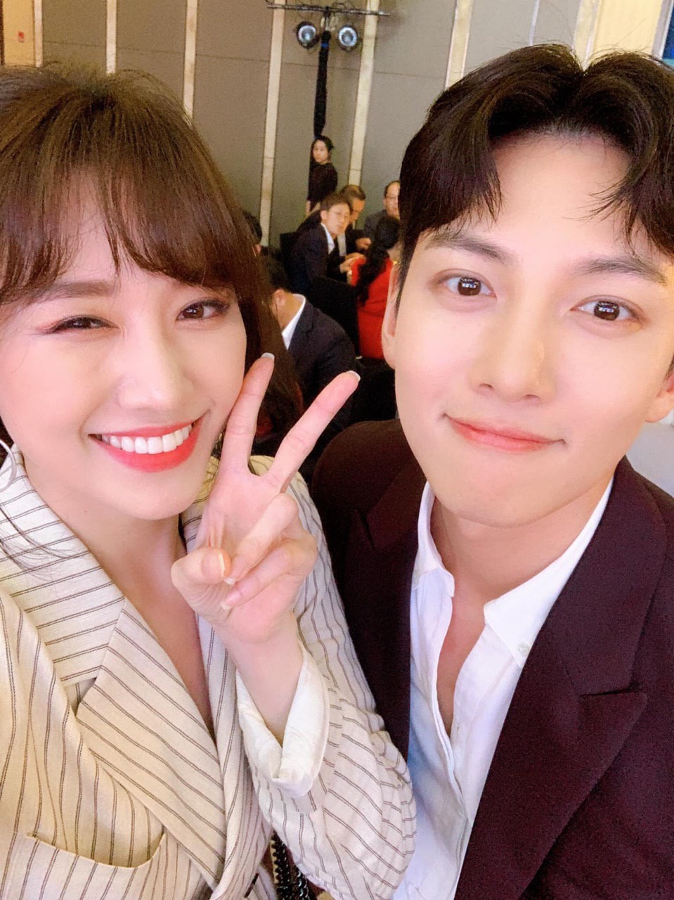 Đứng cạnh mỹ nam “vạn người mê” Ji Chang Wook, Hari Won vẫn thu hút spotlight với sự rạng rỡ, tươi sáng của mình.