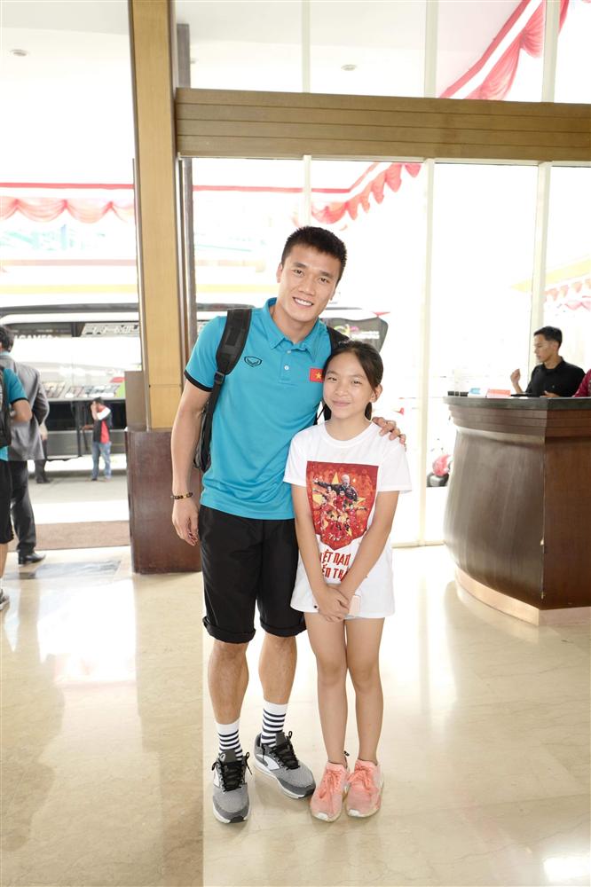 Cô bé chụp ảnh cùng thủ môn Bùi Tiến Dũng.
