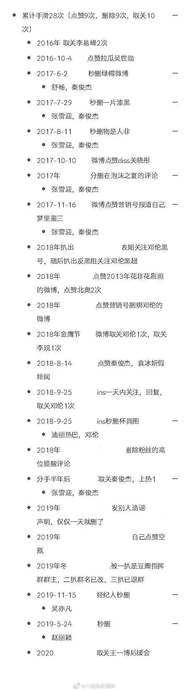 Sau khi Dương Tử like bài viết của Tiêu Chiến rồi hủy bỏ đã dẫn đến lượng lớn bình luận cười nhạo, châm biếm của dư luận. Sau sự kiện này, dân mạng đã tổng kết lại bảng danh sách số lần “trượt tay vô tình” của Dương Tử với tổng 28 lần trong 4 năm, thêm vào lần trượt tay với Tiêu Chiến này nữa là 29 lần. Trong đó có 6 bài viết là liên quan đến bạn trai trước Tần Tuấn Kiệt, những bài khác chủ yếu là ràng buộc nam minh tinh để tạo tin đồn tình cảm.