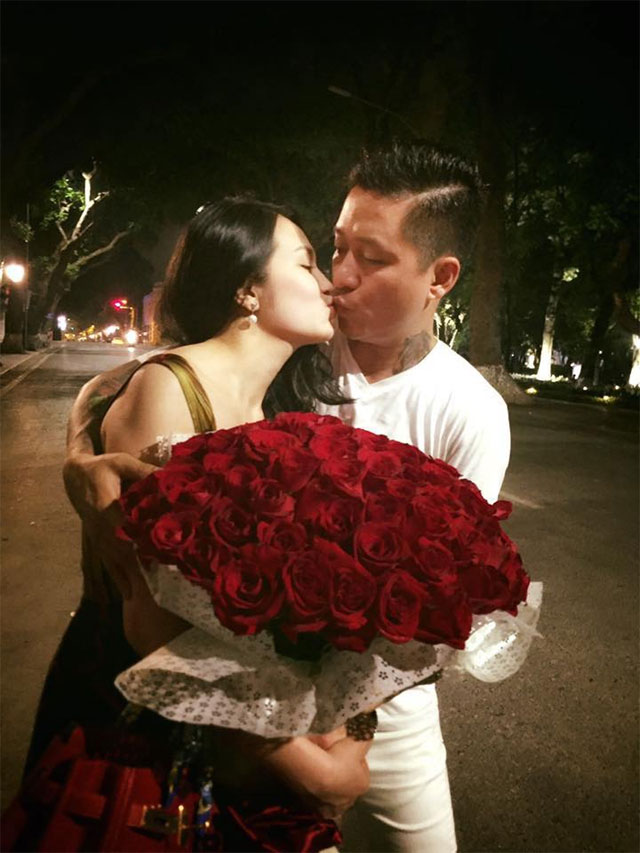Tuấn Hưng mua hoa hồng và trao cho bà xã nụ hôn trong dịp sinh nhật 27 tuổi của Hương Baby.