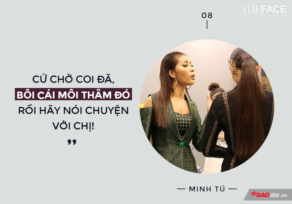 Bất bình vì thí sinh đội mình bị loại, Minh Tú lớn tiếng nói với Lan Khuê: “Đừng làm hoa hậu thân thiện, đừng làm miss 10+1”. Đây được coi là câu nói có sức hút ngay từ khi tập 3 chưa phát sóng vì đã được Minh Tú tiết lộ trước.