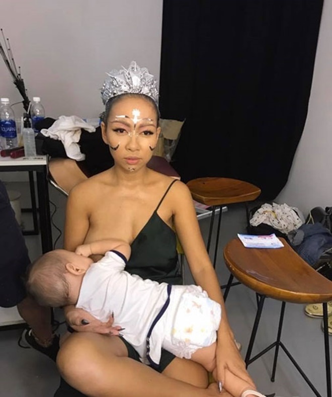 Phan Như Thảo cũng từng khoe khoảnh khắc cho con bú “bất chấp địa hình” như thế này khiến nhiều người thích thú.