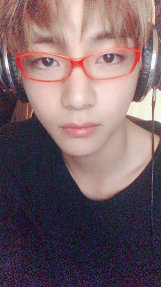 Một lần V vô tình đăng tải tấm hình selfie đeo cặp kính lọc này lên. Xấu hổ, anh ngay lập tức xóa và chặn nó lại nhưng người hâm mộ đã nhanh tay lưu lại rồi chia sẻ lên web.