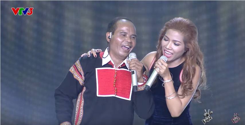 Hai bố con Nie Y Hon & Kpa H’Quyên trên sân khấu The Voice 2017