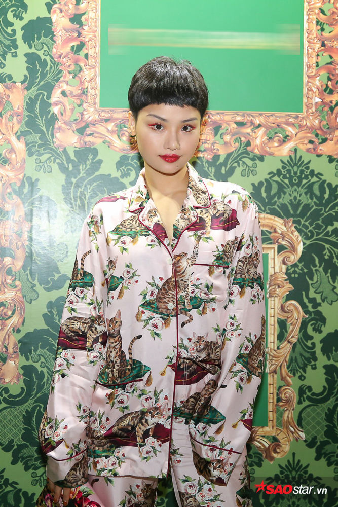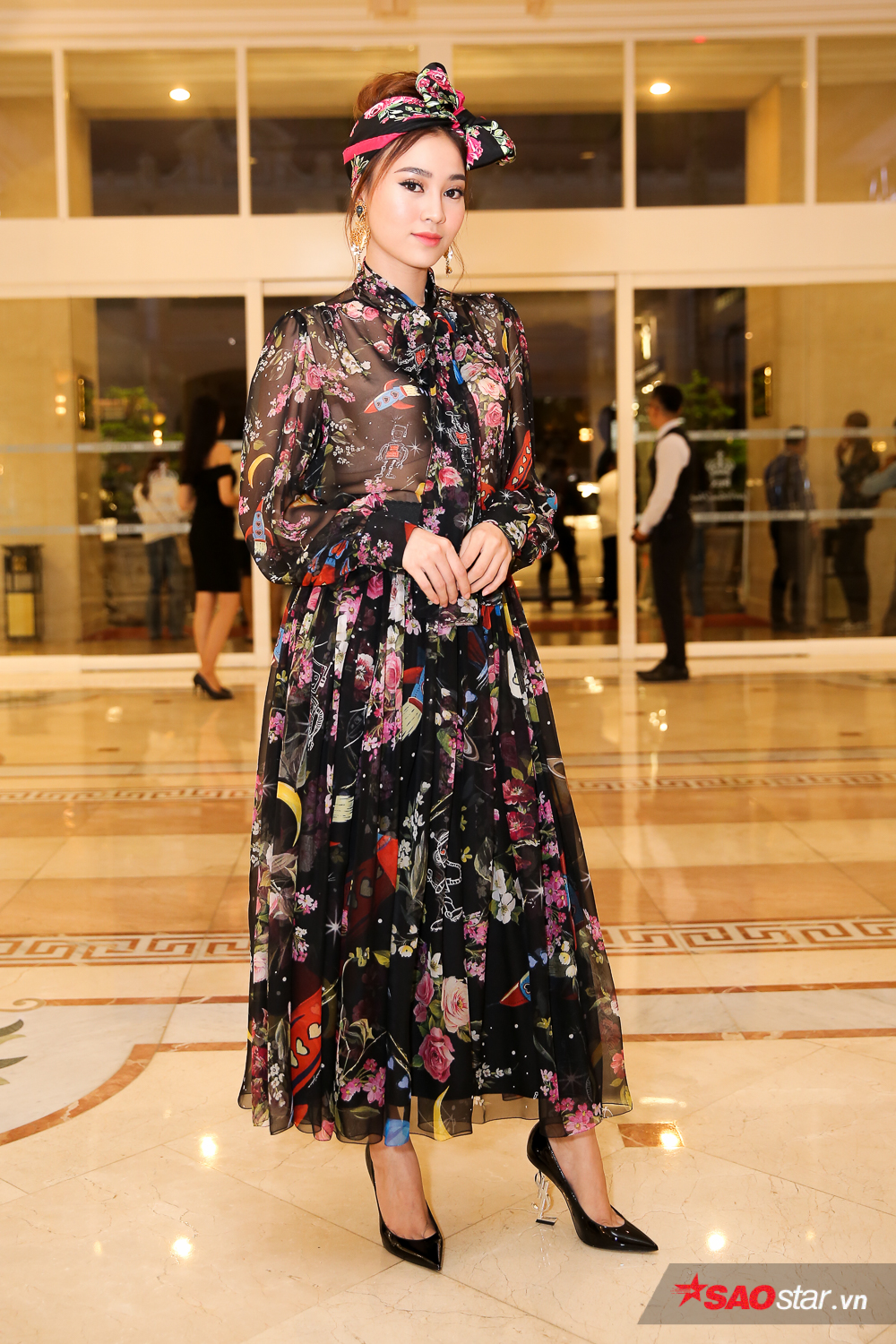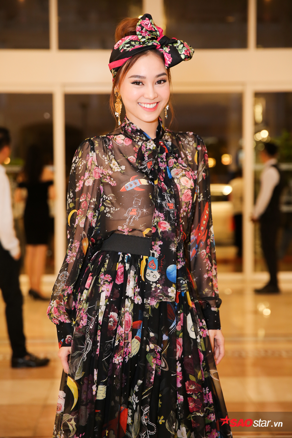 Thuỳ Dung lựa chọn phong cách thanh lịch hơn thường ngày. Chiếc váy tông màu trắng đen, hoạ tiết chấm bi tôn lên vóc thanh mảnh và bờ vai trần của người đẹp. Đây cũng là sự kiện đầu tiên mà Thuỳ Dung tham dự sau khi trở về nước từ cuộc thi Misss International 2017.