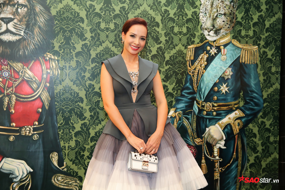 Hoa hậu Jolie Nguyễn cũng gây ấn tượng với phong cách thanh lịch mà không kém phần sang chảnh có giá trị khoảng 300 triệu đồng.