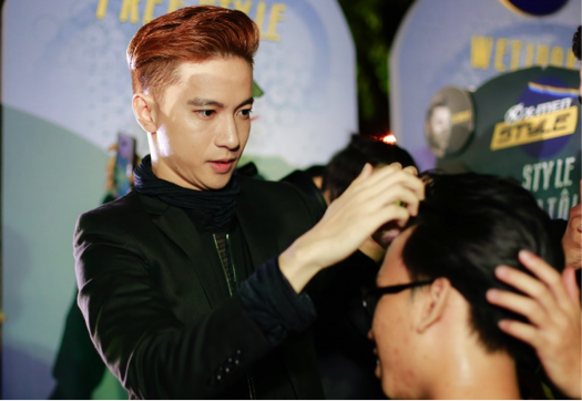 Will khá thoải mái trong nhiệm vụ mới này. Vốn là người hài hước, anh vừa tạo kiểu tóc vừa trò chuyện, tư vấn cách phối hợp trang phục để tạo nên vẻ ngoài hoàn hảo khi diện cùng kiểu tóc spiky.