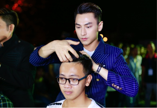 Sau khi tạo kiểu clean-cut cho một bạn nam, cựu nhóm trưởng còn nhiệt tình hỗ trợ Jun chỉnh tóc cho nam sinh khác. Sau khi thảo luận cùng “anh cả”, Jun chọn kiểu freestyle - vừa đơn giản, phù hợp với vẻ ngoài mà vẫn thời trang.
