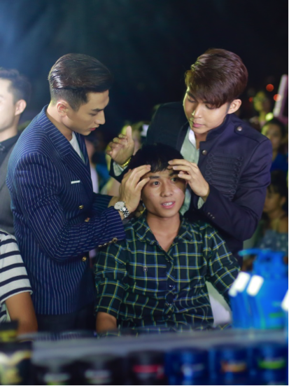 Không chỉ so thời trang tóc, các thành viên còn tự mình tạo mẫu cho các nam sinh viên ĐH CNTT để chứng minh độ thu hút của phong cách cá nhân. Isaac chăm chú với vai trò mới của mình, anh cũng là stylist nhanh tay nhất trong nhiệm vụ mới mẻ này.