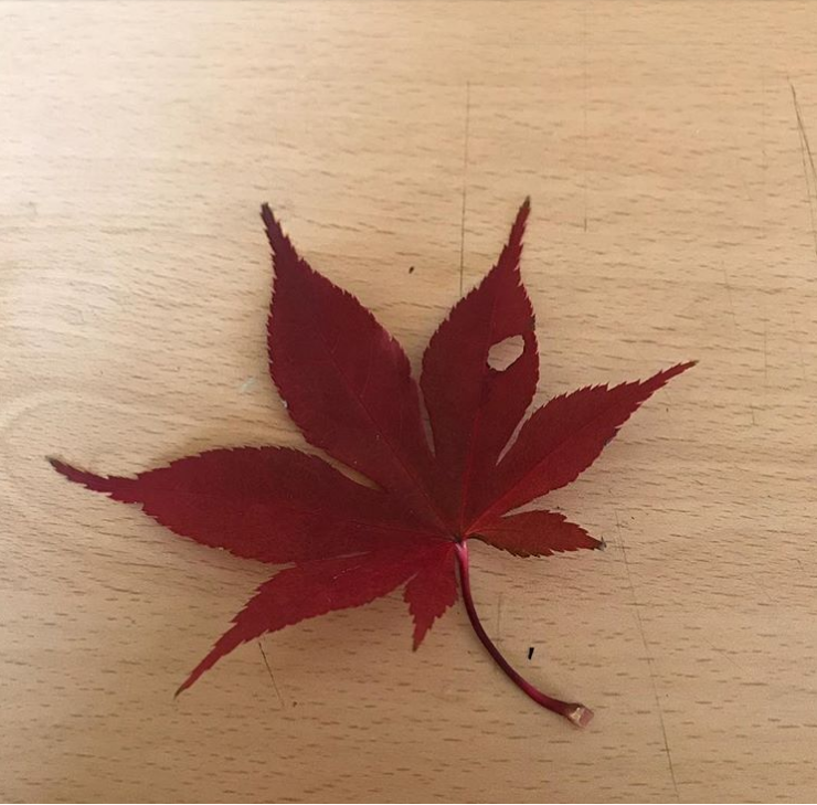 Hình ảnh chiếc lá đỏ được chị gái G-Dragon chia sẻ trên trang instagram cá nhân.