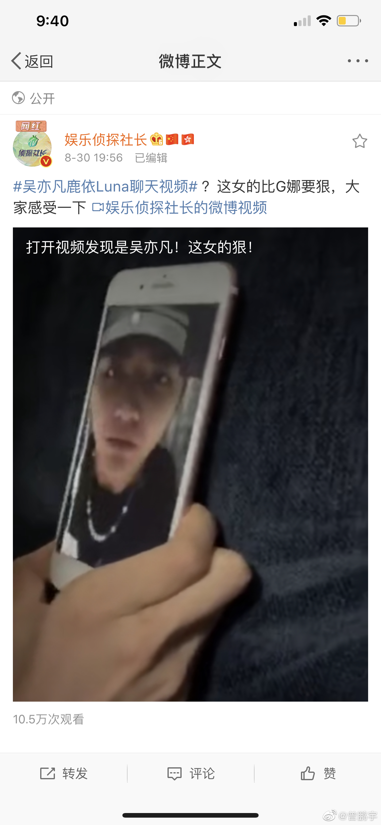 30/8 có lẽ là ngày khó quên nhất của Ngô Diệc Phàm trong năm 2019 này. Anh lộ ảnh hẹn hò với sao nữ trẻ tuổi tên là Lộc Y, gây ồn ào suốt cả buổi sáng nhưng lại không lên tiếng nói gì. Đến buổi chiều cùng ngày, trên mạng lan truyền đoạn video call được cho là của Ngô Diệc Phàm với Lộc Y, khiến từ khóa “Ngô Diệc Phàm Lộc Y Luna video call” đã nhanh chóng leo lên no.1 hotsearch với hàng chục triệu lượt tìm kiếm.