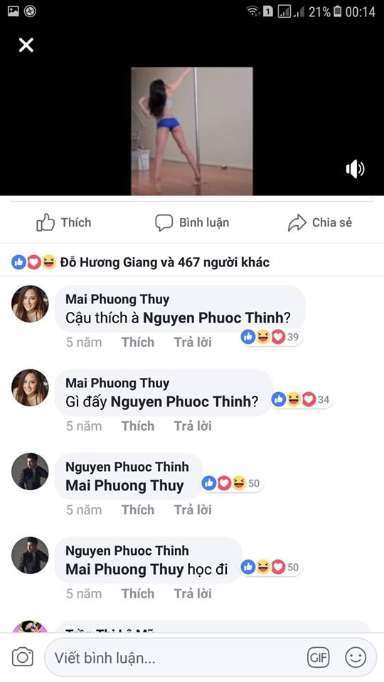 Cùng năm đó, Mai Phương Thúy đăng tải một bức hình selfi chung với Noo Phước Thịnh cùng caption: “Đi chụp với anh iu…” Hay Noo chia sẻ một đoạn múa cột từ trang Hàn Quốc, Mai Phương Thúy đa vào comment còn tag hẳn tên: “Cậu thích à Nguyen Phuoc Thinh?”. Sau đó Noo đã trả lời và bảo Mai Phương Thúy đi học múa.