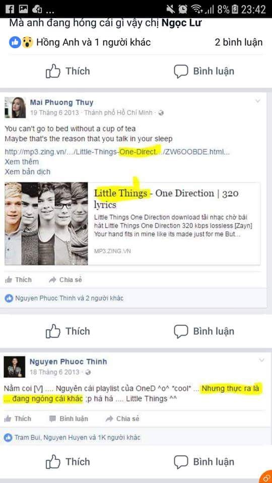 Không những thế cách đây rất nhiều năm, Noo và Mai Phương Thúy đã có những hành động thả thính nhau như vậy và bị fan đào mộ. Năm 2013, cả 2 có cùng nhau đăng status về One Derection. Mai Phương Thúy dẫn link bài hát Little Things của OneD, còn Noo Phước Thịnh đáp lại bằng status: “Nằm coi [V]…Nguyên cái playlist OneD ^o^ *cool*… Nhưng thực ra là…đang hóng cái khác :p hà hà …Little Things ^^.”