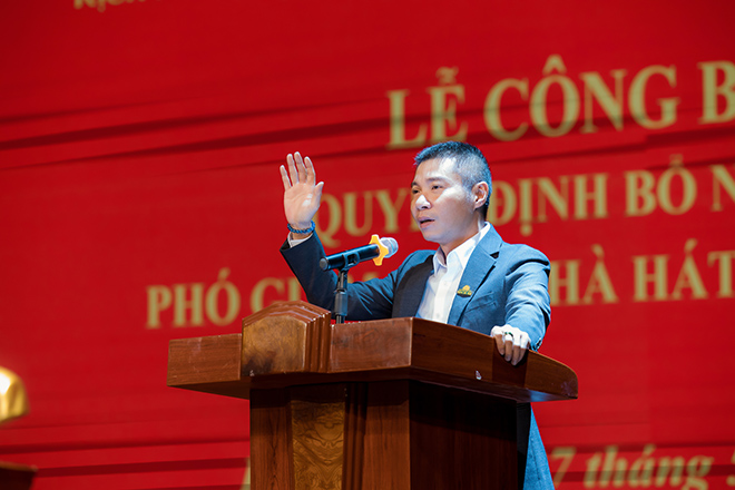 “Tôi cảm ơn sự tin tưởng của ban giám đốc Sở, ban giám đốc Nhà hát. Tôi sẽ cố gắng hết sức mình, góp tài năng và sự cống hiến để giúp nhà hát được phát triển hơn nữa và được nâng lên tầm cao mới”.