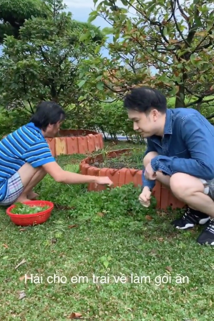 Dương Triệu Vũ cũng từng chia sẻ về những ngày anh trai ở lại nhà thờ Tổ trong thời gian dịch bệnh hoành hành. Giọng hát Em lỡ thôi à cho biết NSƯT Hoài Linh đen hơn, cánh tay xuất hiện “hai màu da” nhưng khỏe mạnh và rất vui vẻ khi được chăm sóc vườn cây tại đây. Anh còn tranh thủ hái rau càng cua để em trai mang về làm gỏi. Hình ảnh đời thường tình cảm của hai anh em khiến người hâm mộ không khỏi thích thú.