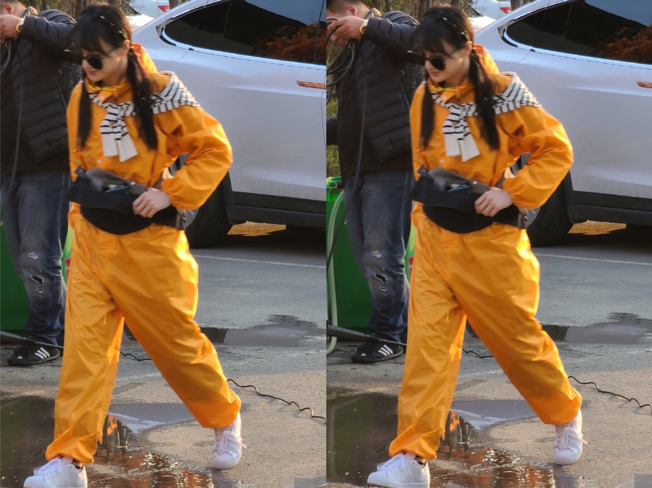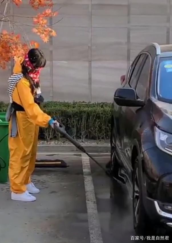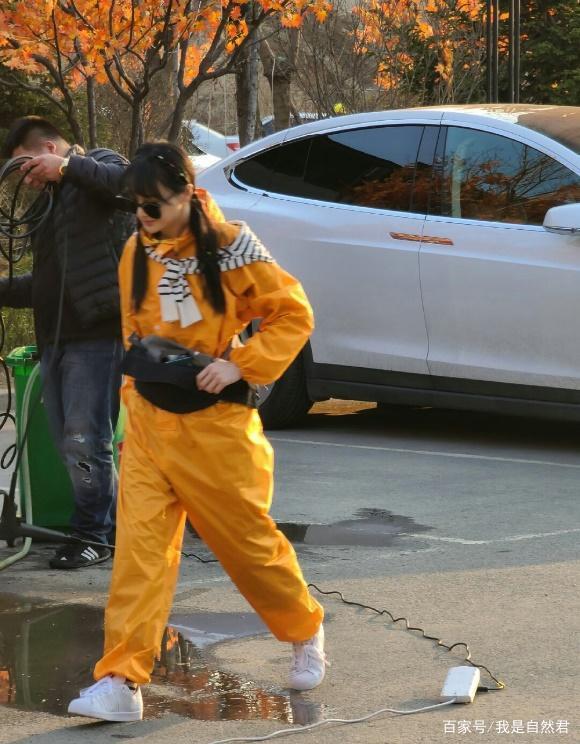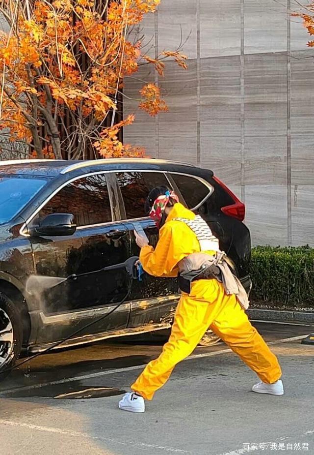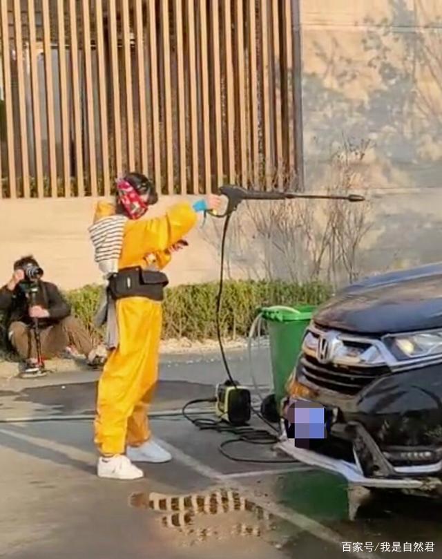 Cư dân mạng đăng tải hình ảnh nói rằng không biết Trịnh Sảng đang quay hình hay đang thực sự rửa xe, cô nàng không chỉ khoác lên người bộ trang phục rửa xe màu vàng sáng chói mà còn đeo thêm một chiếc túi đen ngang eo.
