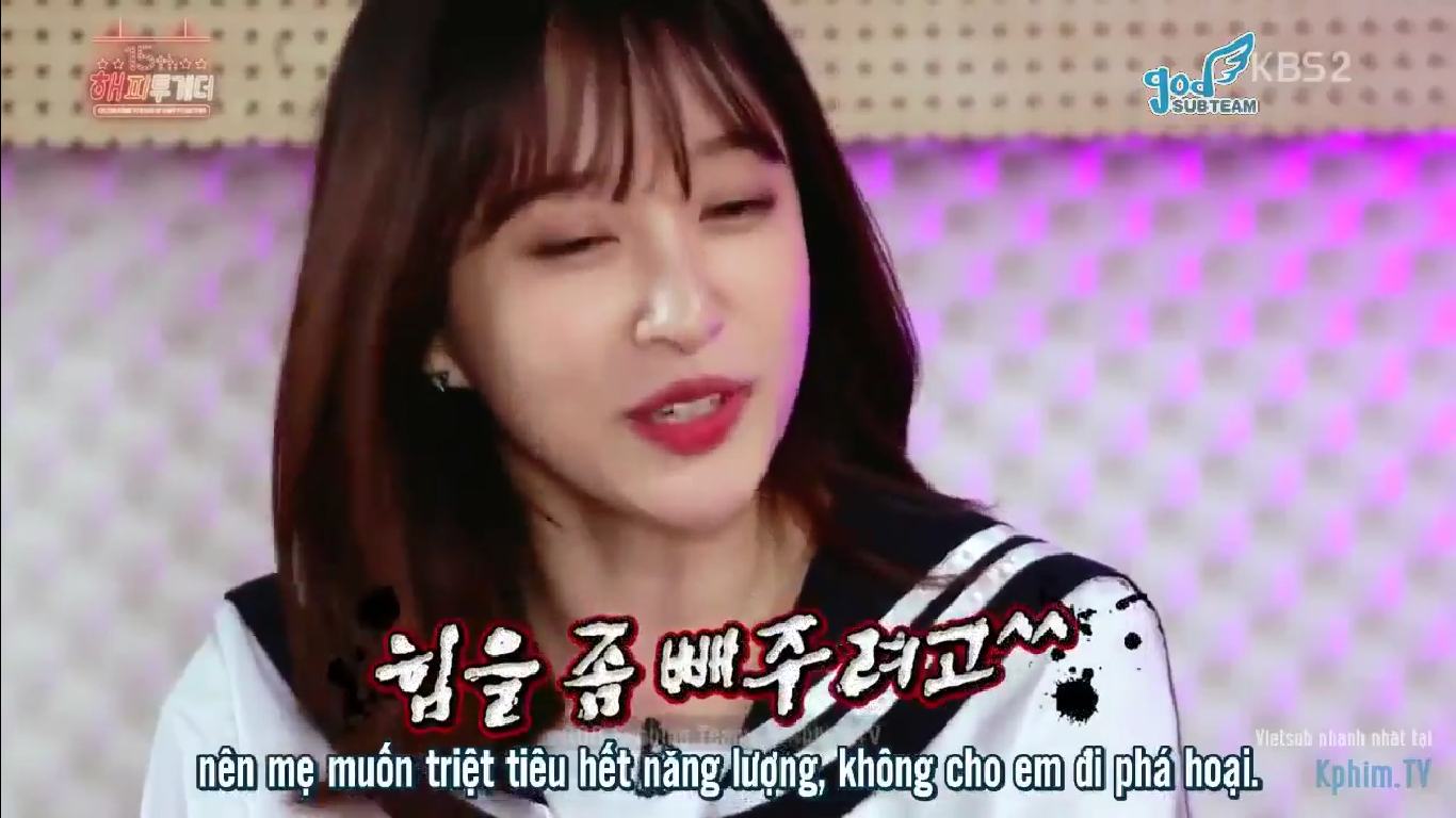 Nữ thần Hani luôn là “trung tâm vũ trụ” tại các chương trình giải trí mà cô tham gia bởi sự “tưng tửng” hài hước đáng yêu của mình. Và mới đây nhất tại Happy Together trong cuộc hội ngộ của các nữ sinh trung học, cô nàng đã tiết lộ một phần tuổi thơ hết sức dữ dội của mình khiến khán giả vô cùng thích thú, thậm chí là có một trận cười nghiêng ngả, đảo điên.