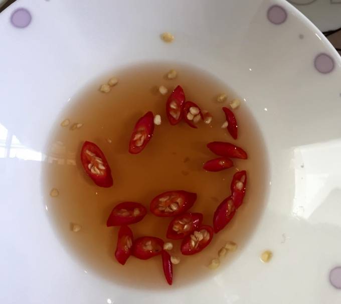 … chấm nước mắm Ngọc Trinh dùng để đãi khách.