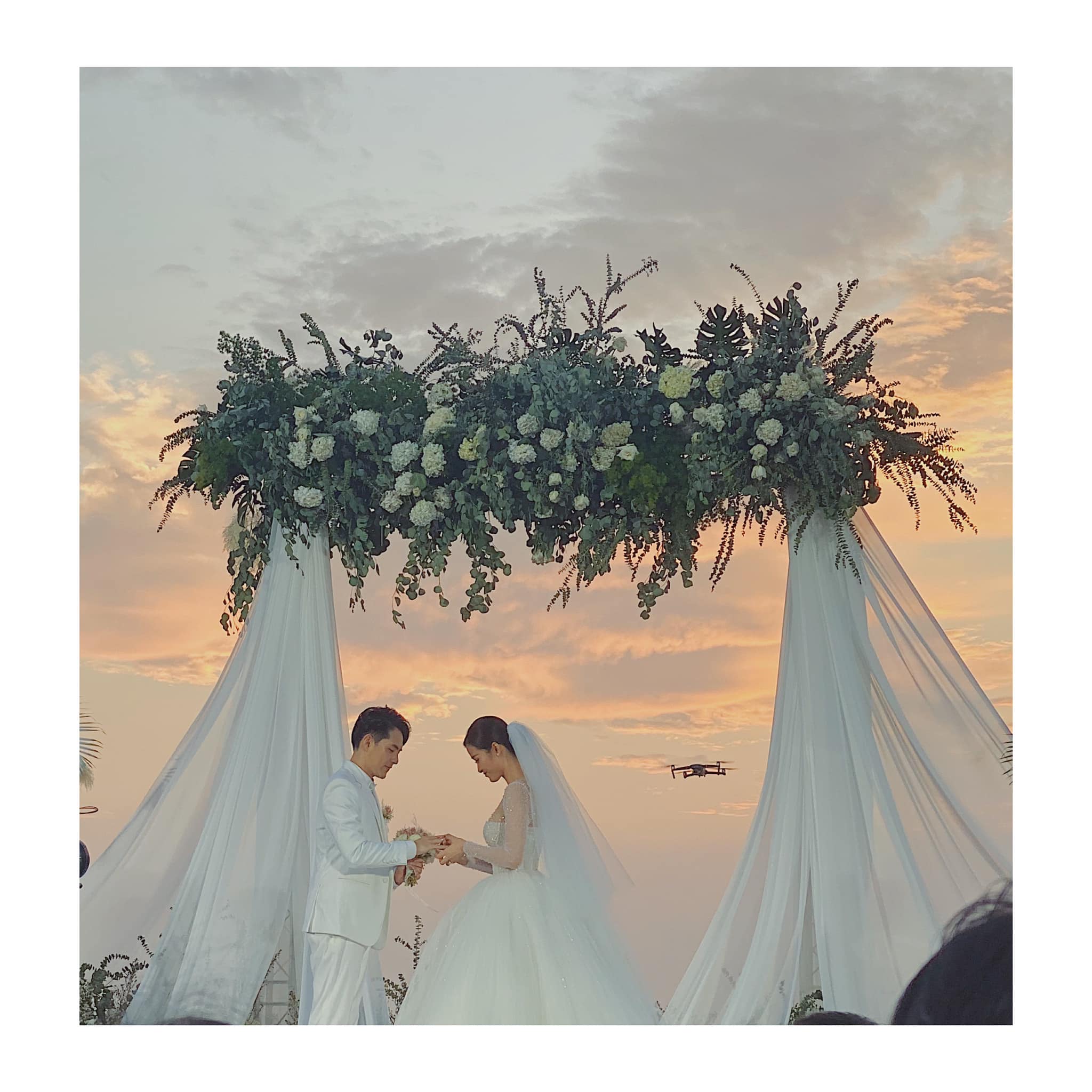 Khoảnh khắc trao nhẫn của cặp đôi Đông Nhi - Ông Cao Thắng. (Nguồn: FB Tài Anh Nguyễn)